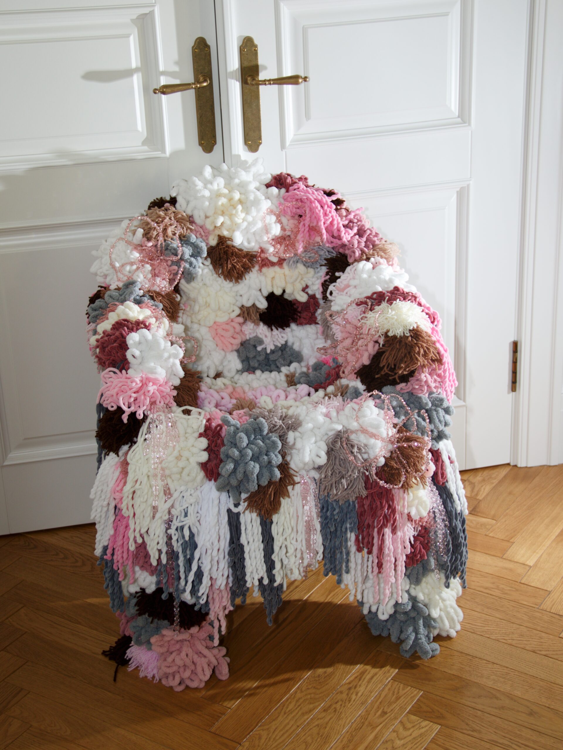 Chair is entirely handmade and inspired by sea corals and spring flowers.