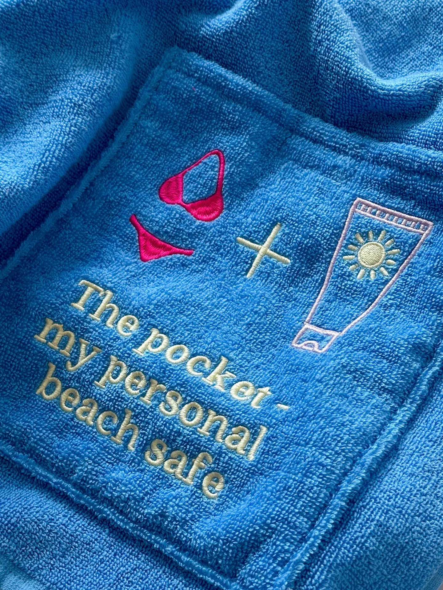 Темно-синій пляжний рушник з кишенею у різних дизайнах